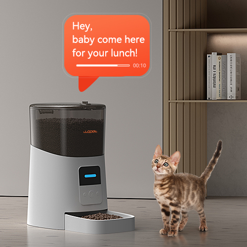 Personalized Voice Meal Call: Our automatic cat feeder allows you to record a 10-second voice message that will automatically play when the meal is dispensed. The familiar sound of the owner's voice provides comfort for your pet and ensures consistent feeding.
