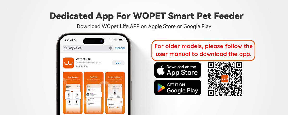Smart App Control: The WOPET automatic dog feeder connects to WiFi (only supports 2.4GHz WiFi networks), allowing you to program and monitor your pet's meals anytime, anywhere through the app "WOpet Life" on your iOS or Android smartphone. You can set up to 15 meals per day with 1-50 portions per meal, accommodating food pellet sizes within 2-15mm.